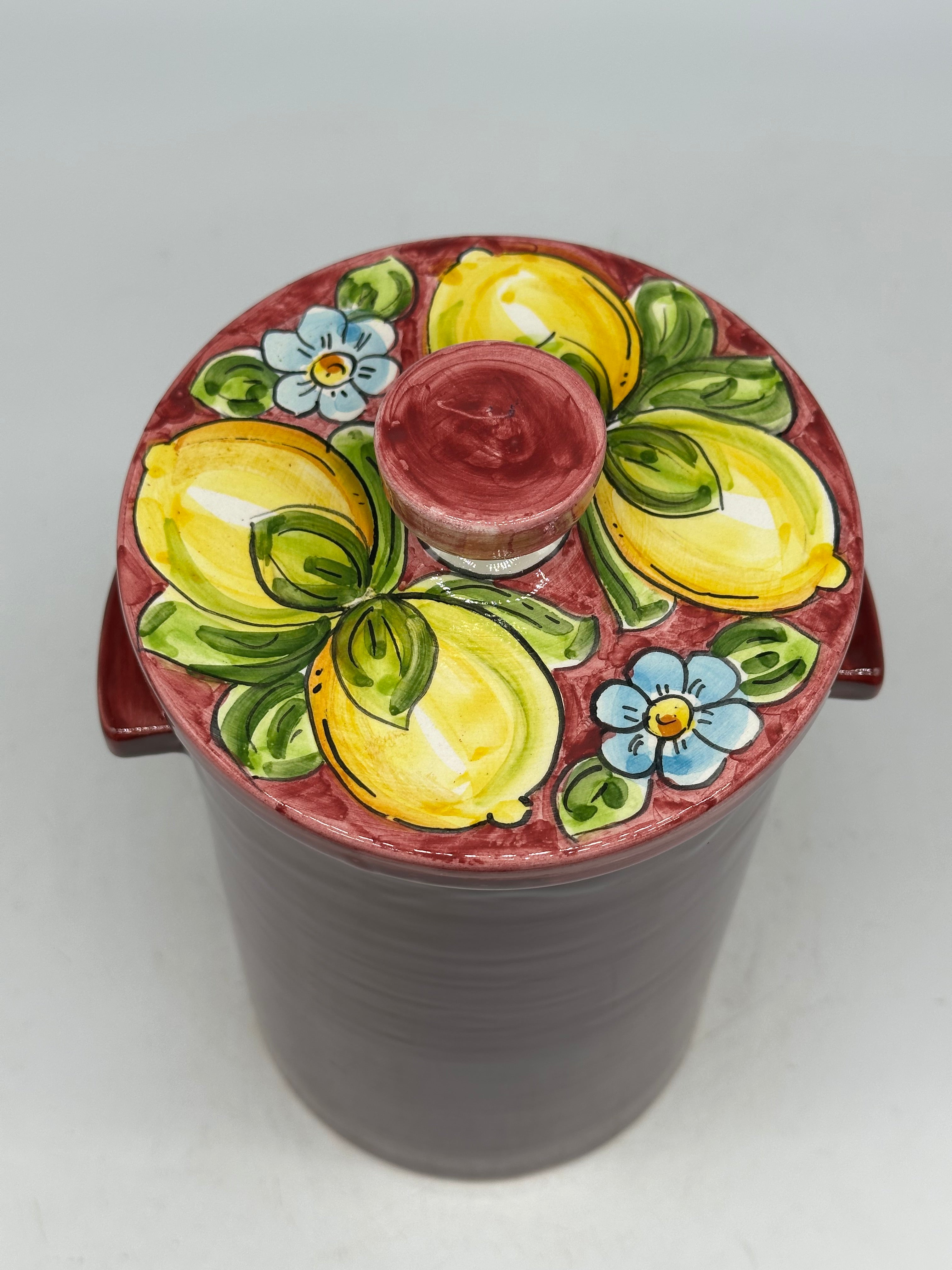 Biscottiera Decorata ‘600 Limoni Ceramica Caltagirone cm H.18 L.24 Artigianale