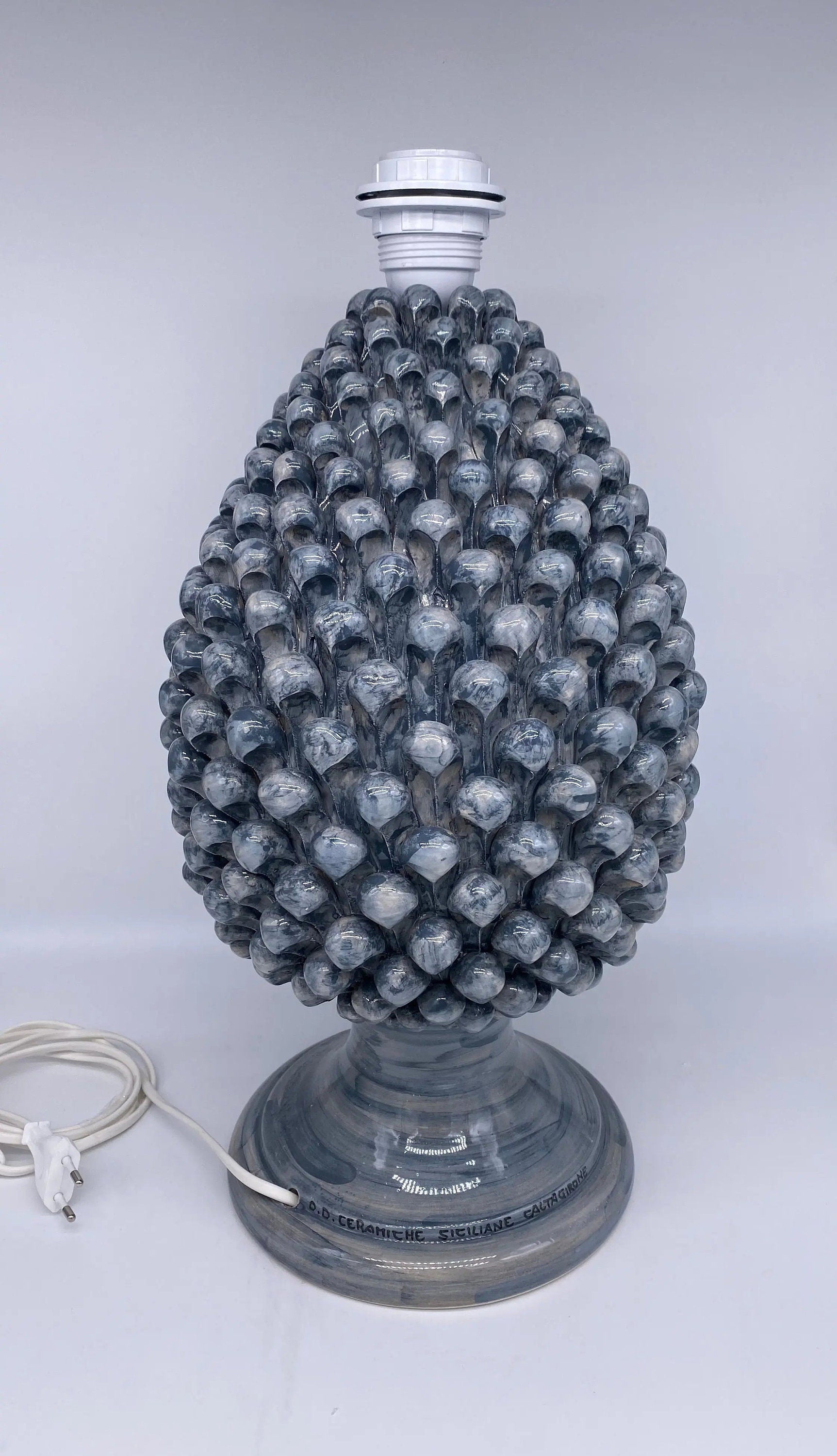 Lampada Pigna Ceramica Caltagirone cm H.40 Artigianale Grigio