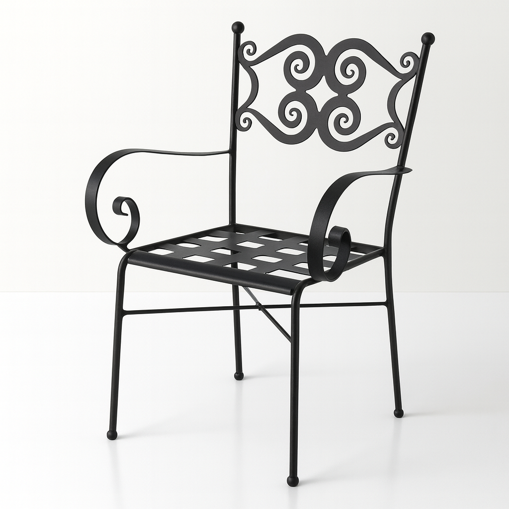 Wrought Iron Chair with Armrests