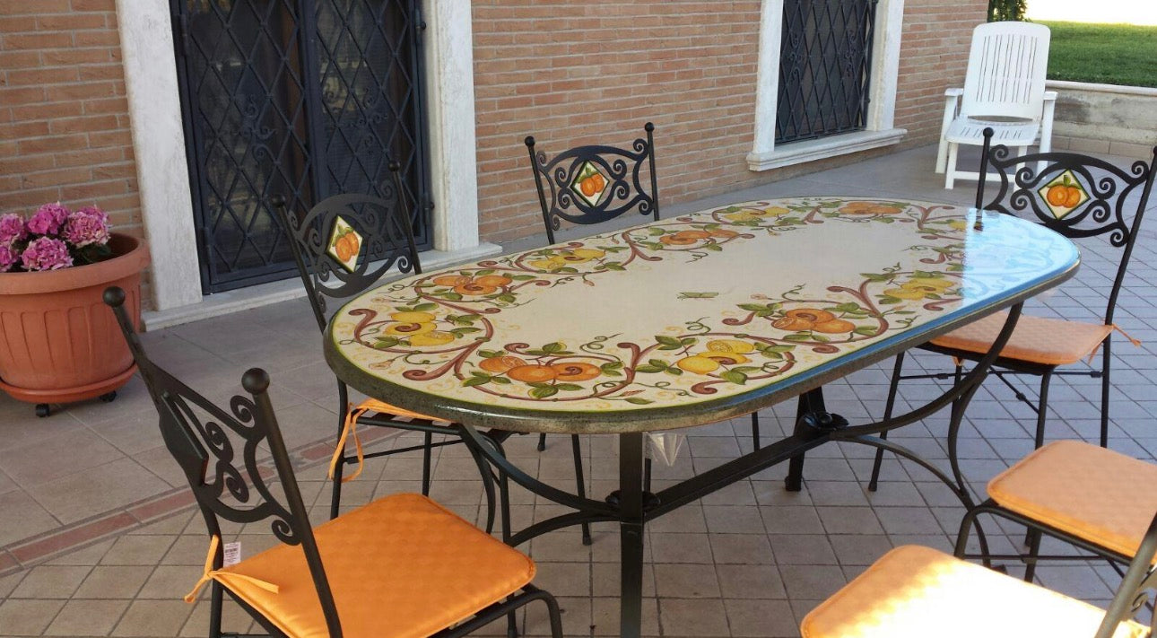Tavolo Ovale Arance Limoni – Pietra Lavica Decorata