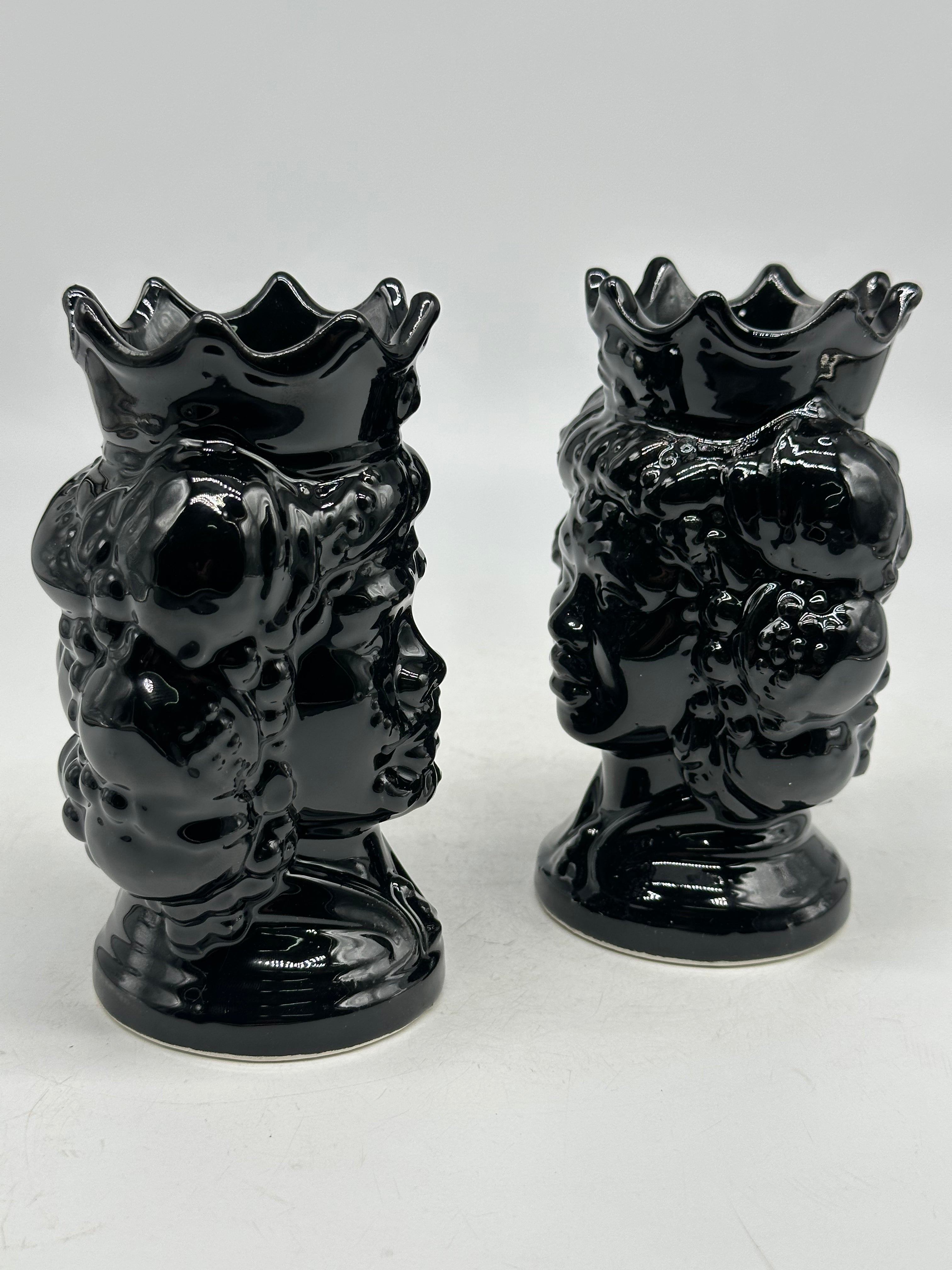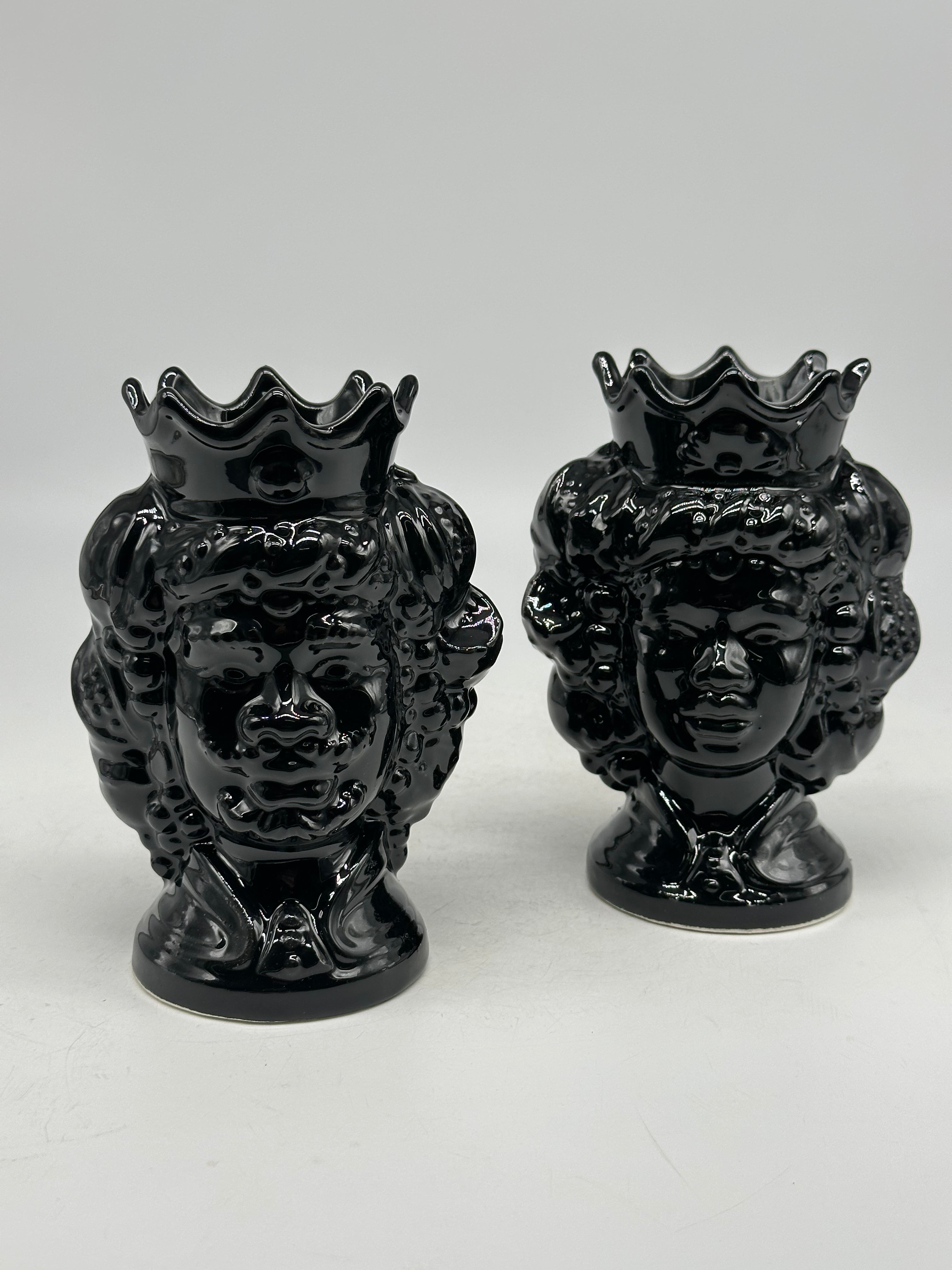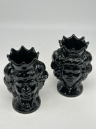 Pair of Moorish Heads Girun Bold Caltagirone Ceramics cm H.15 L.11 Handcrafted Black