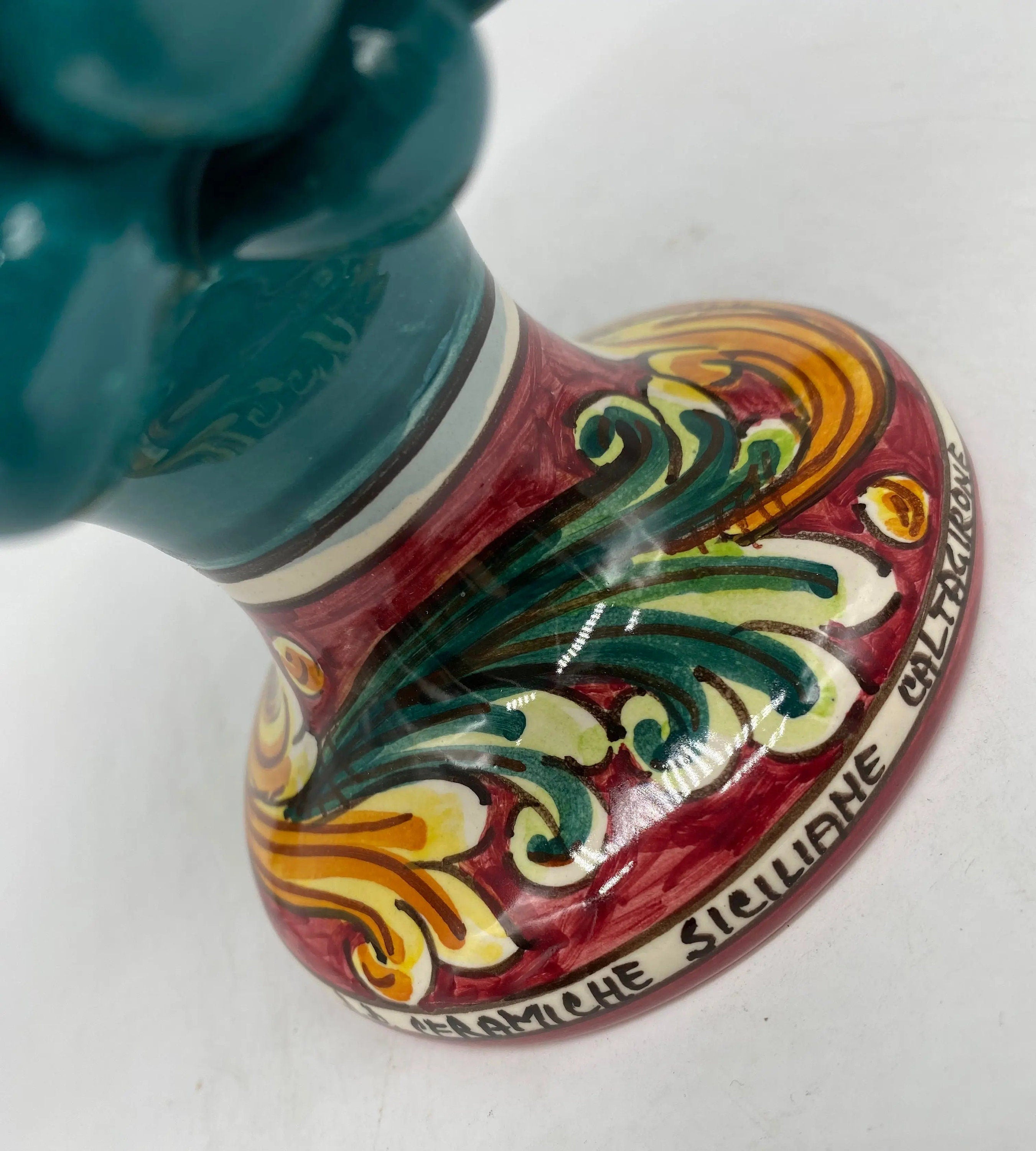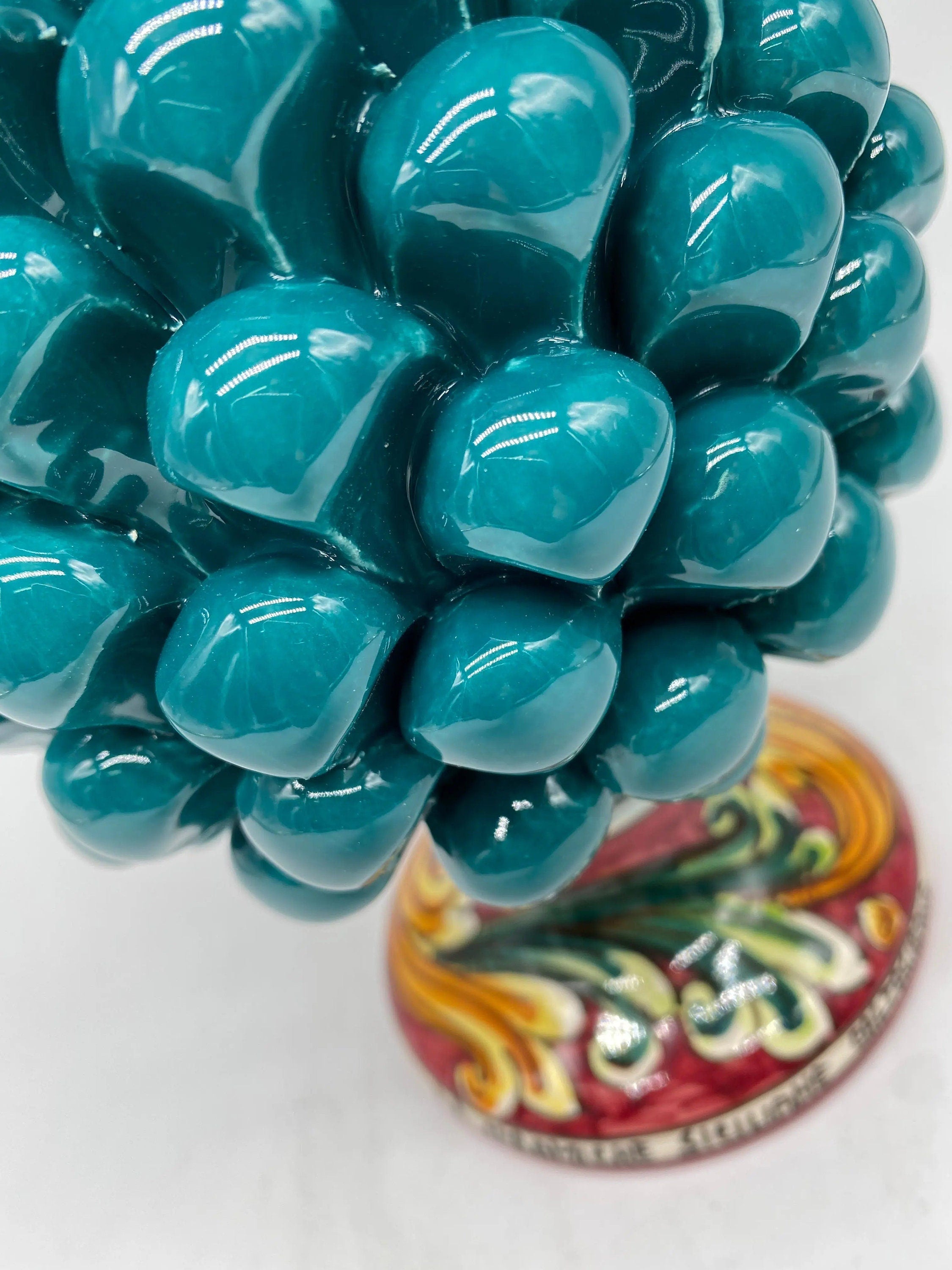 Caltagirone Ceramic Pinecone cm H.20 Artisan Green Ottanio Decorated Base