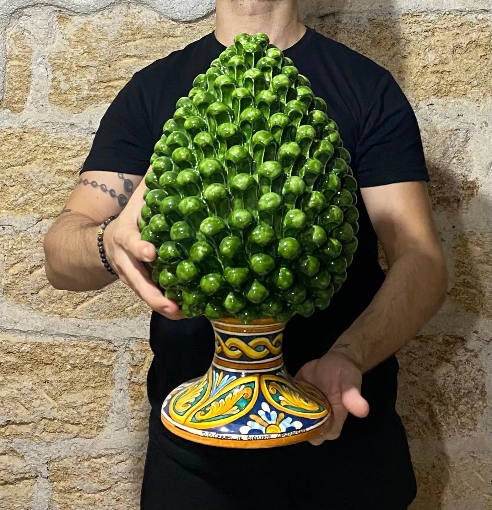 Caltagirone Ceramic Pinecone cm H.40 Green Lawn Artisan Decorated Base