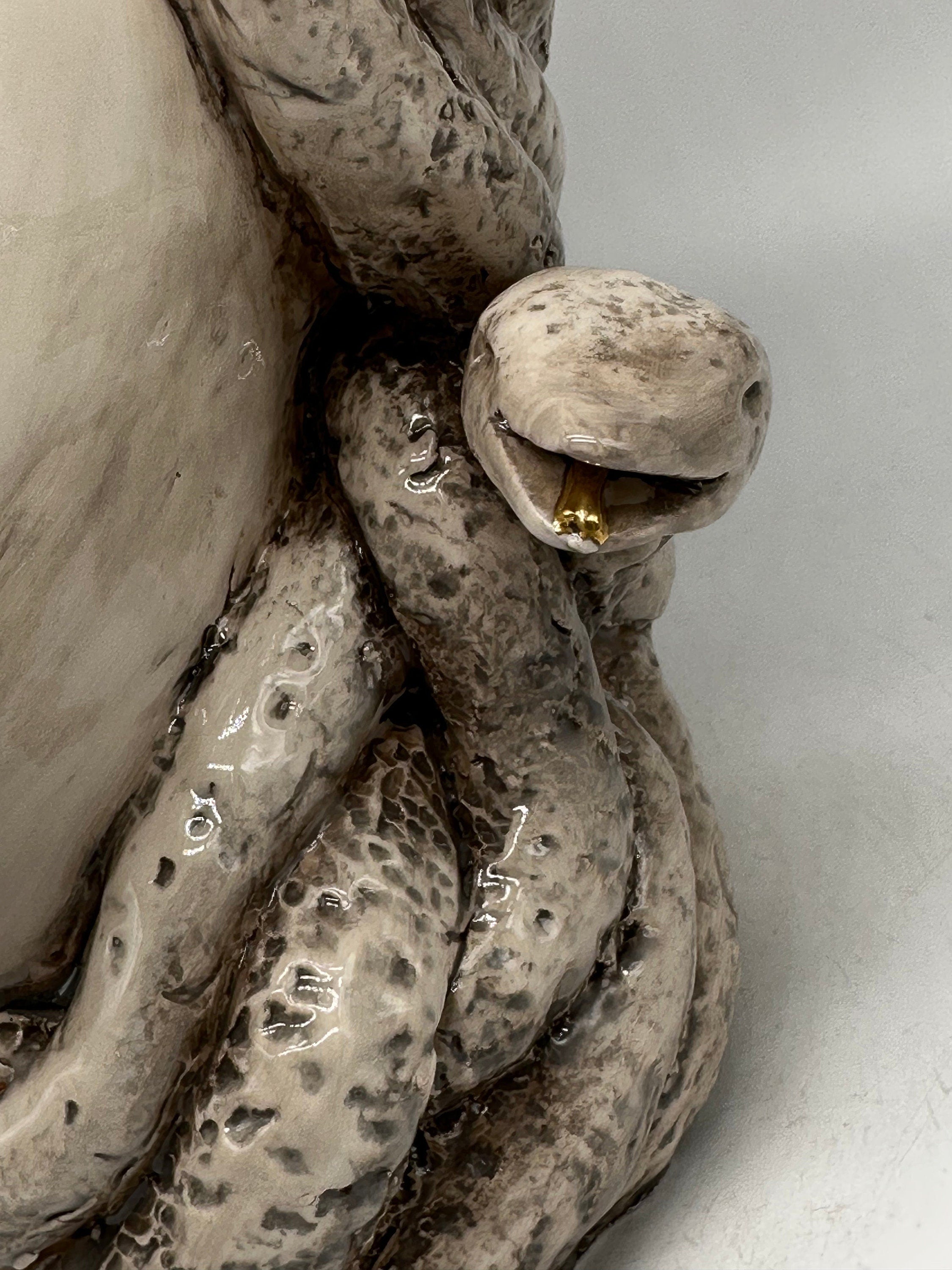 Elegant antique effect with precious "dirties" and details in real 12% pure gold (jewel and snake tongues)