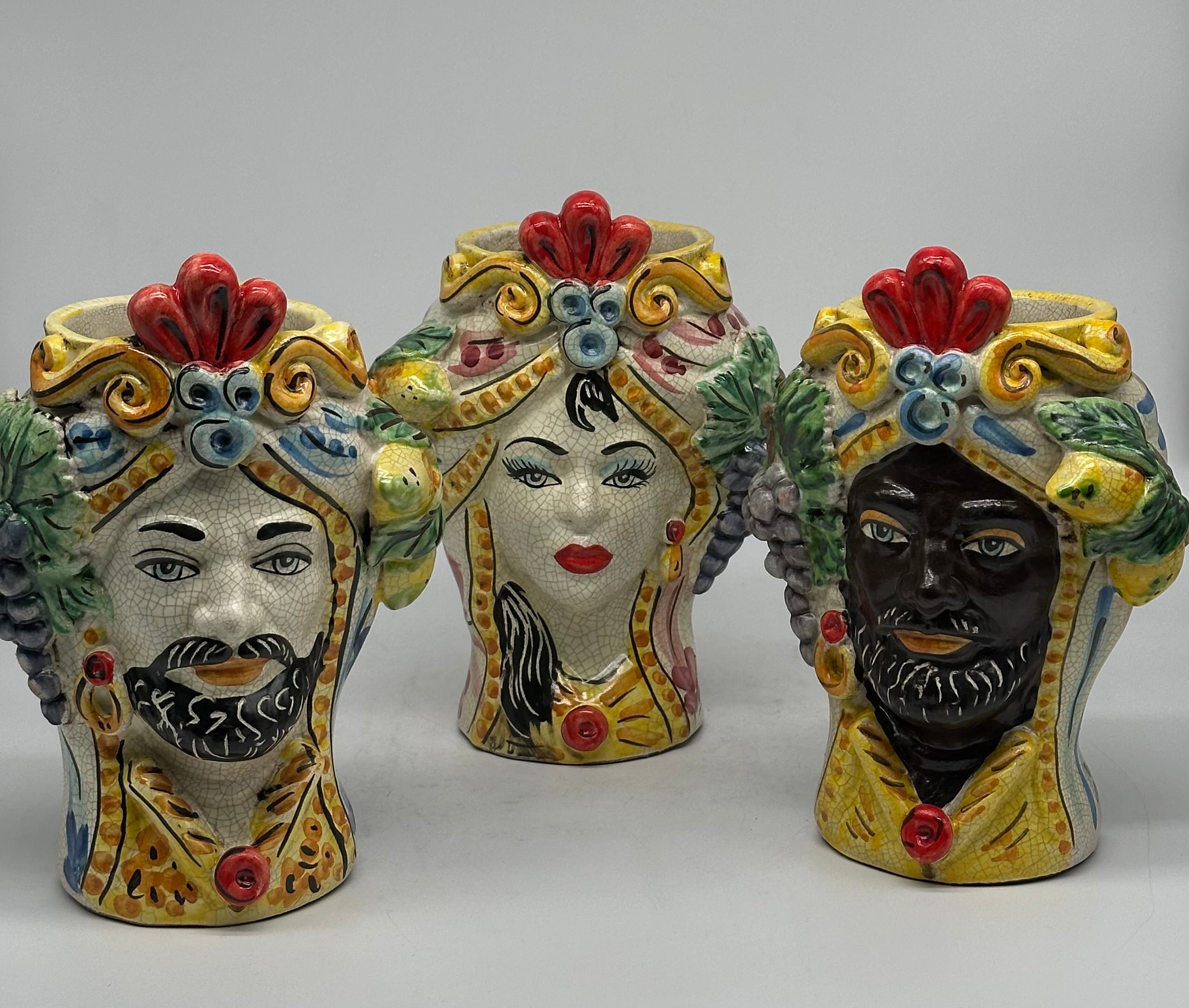 Moor's Heads Classic Caltagirone Ceramic cm H.20 L.15 Handcrafted Craquelé