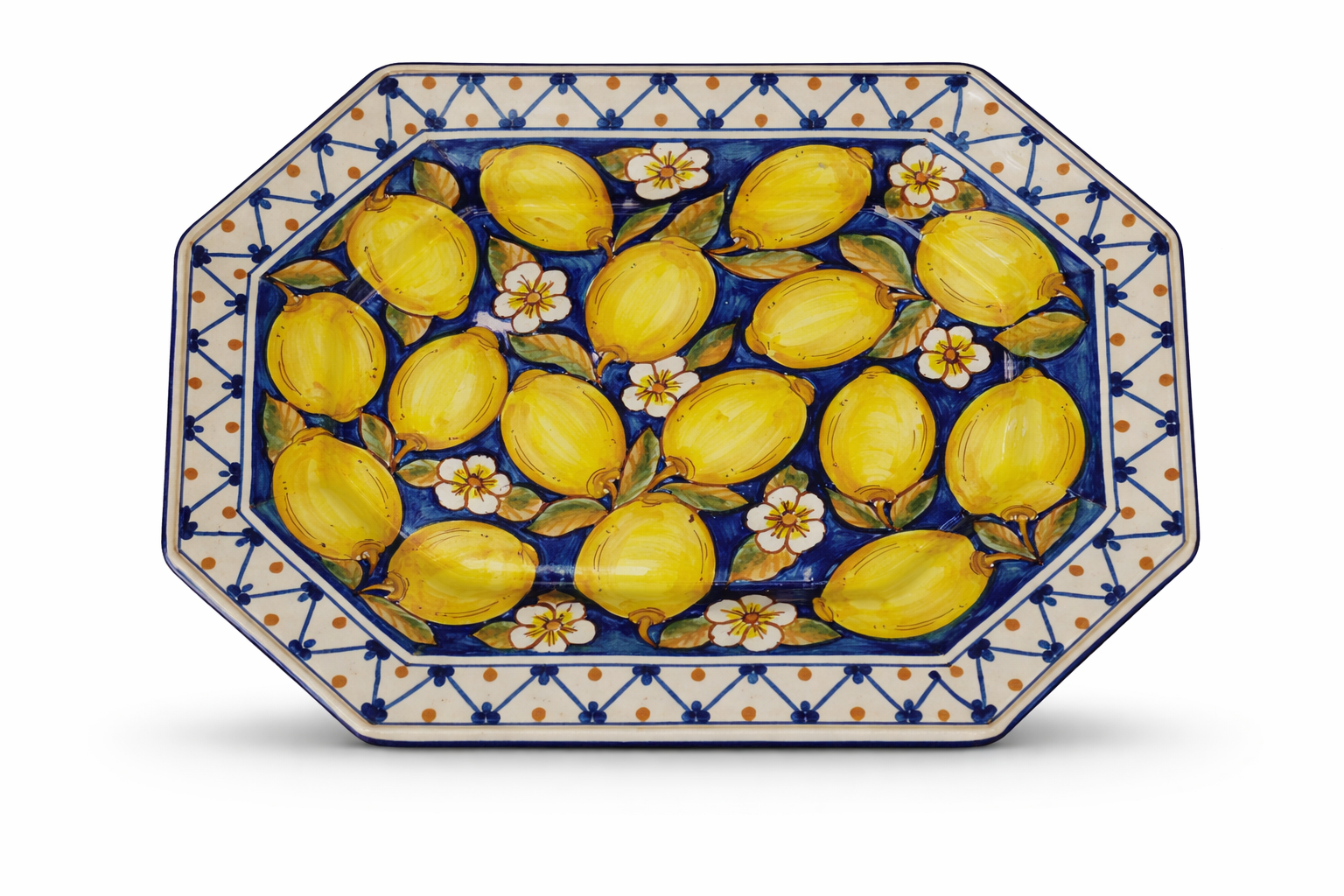 Vassoio Ottagonale “Limoni di Sicilia” – 42 × 32 cm | Ceramica di Caltagirone