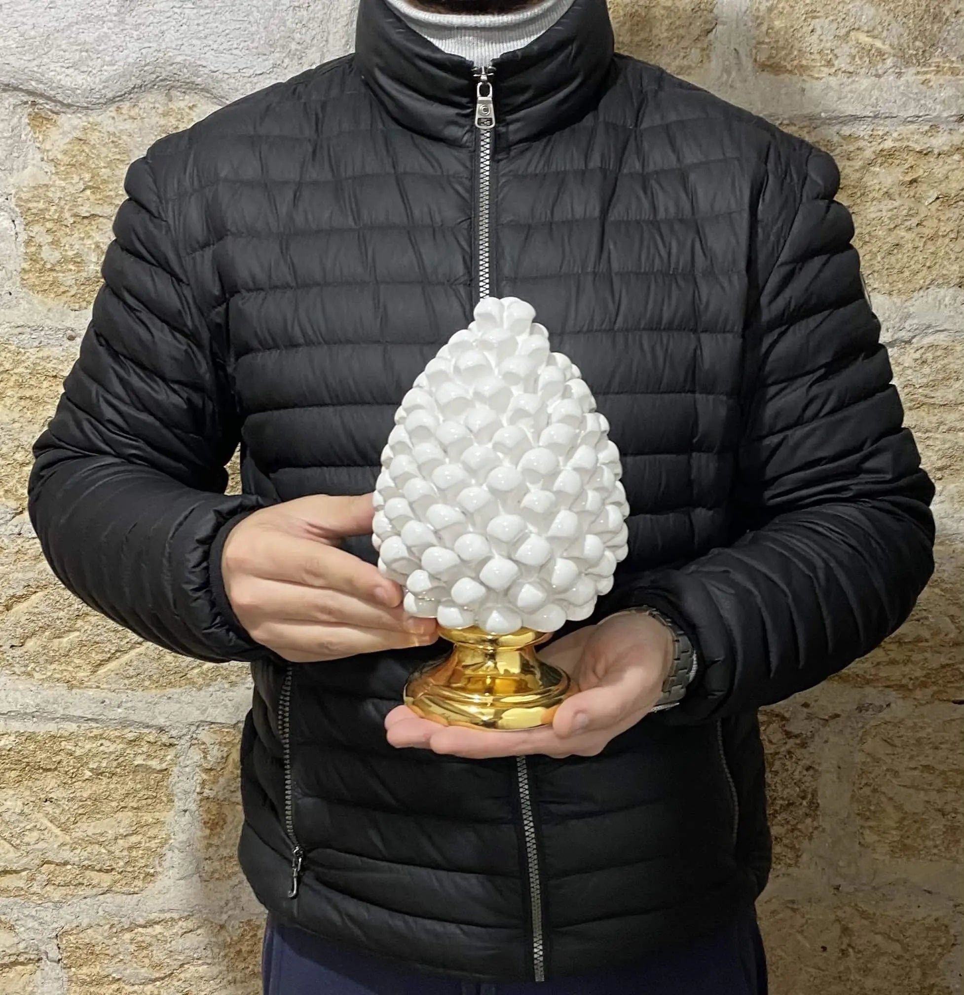Pigna Aurum Ceramica Caltagirone cm H.20 Artigianale Bianco
