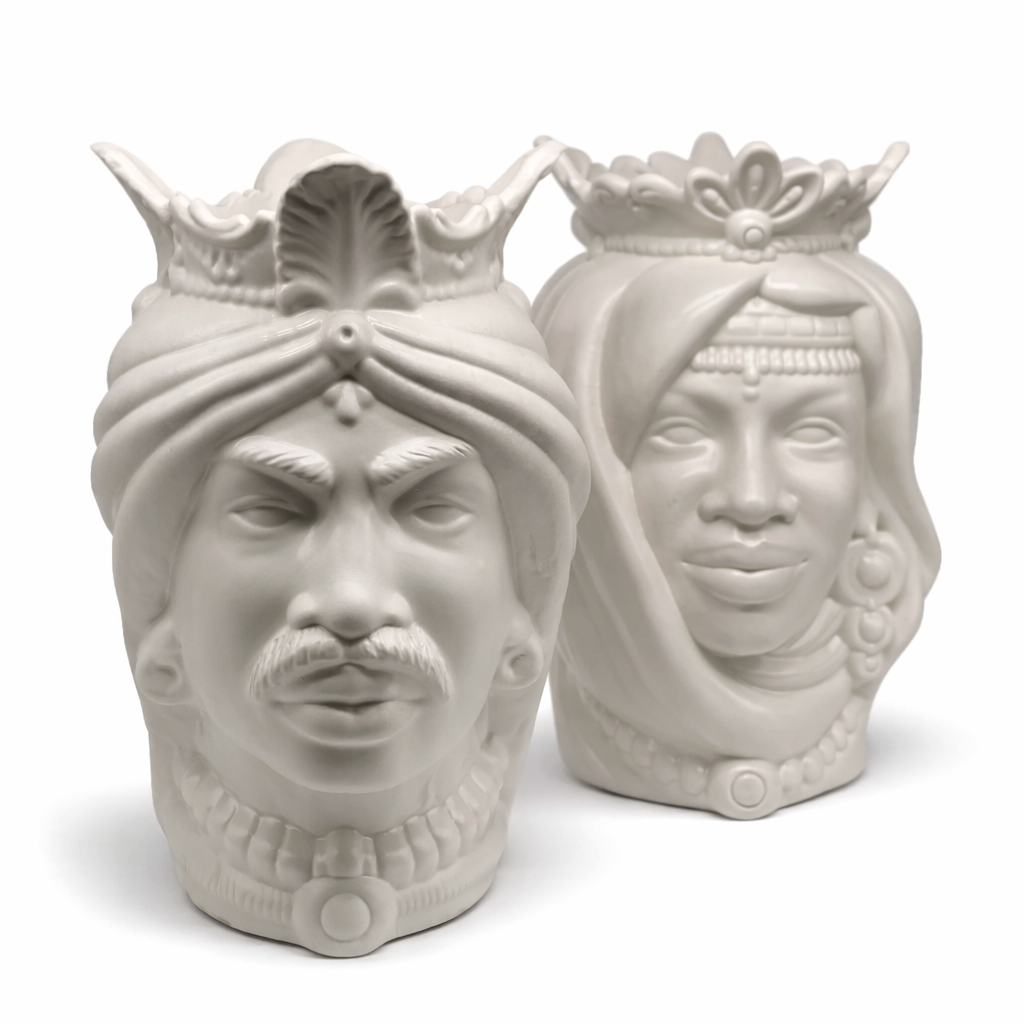 Teste di Moro Afro Ceramica Caltagirone cm H.35 L.23 Artigianale Bianco Opaco